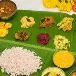 A traditional vegetarian feast served on a banana leaf, including dishes like avial, thoran, olan, sambhar, and payasam. Usually prepared during festivals like Onam and Vishu.